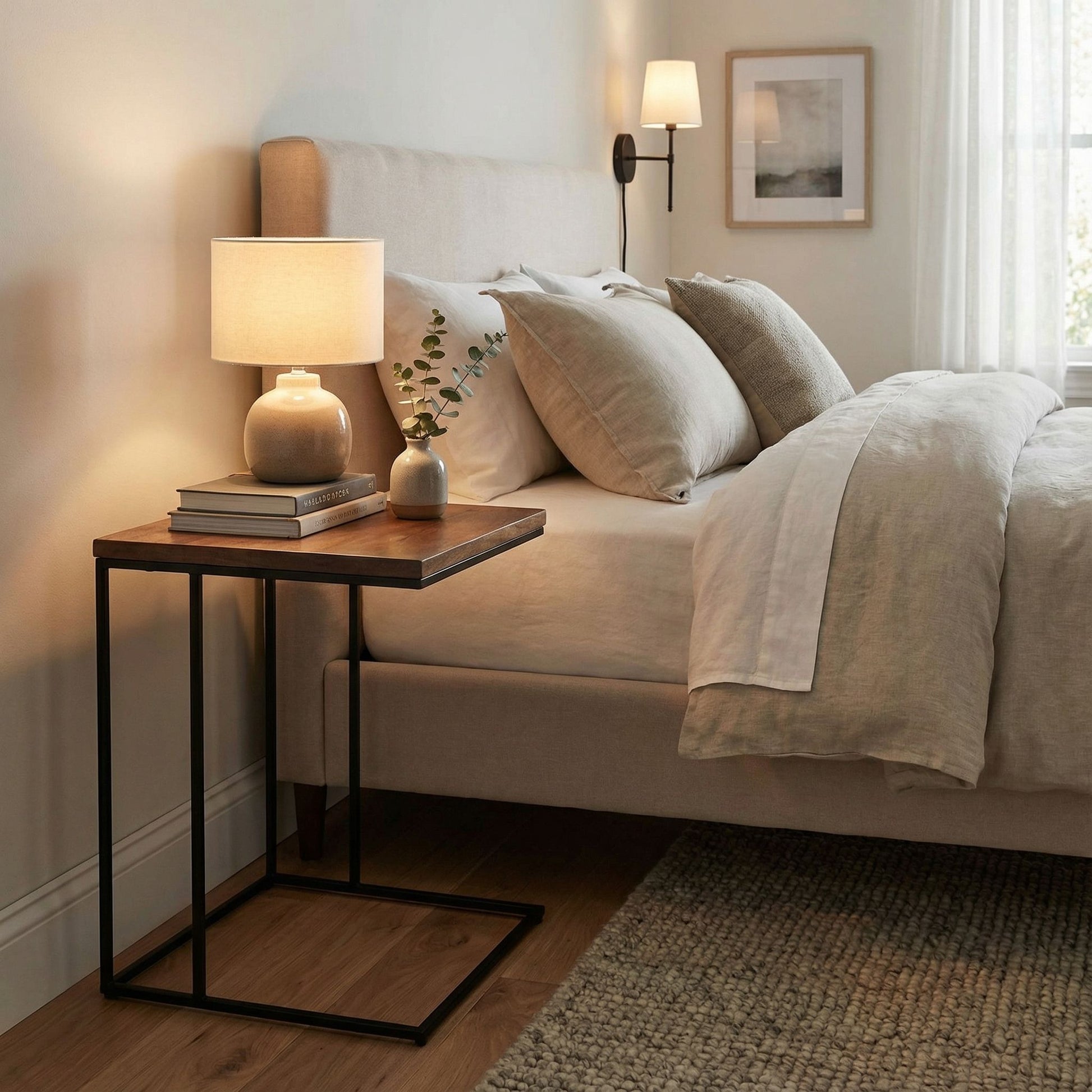 - Durable: Constructed with a black metal frame and a wooden top, this c-table is designed to last.