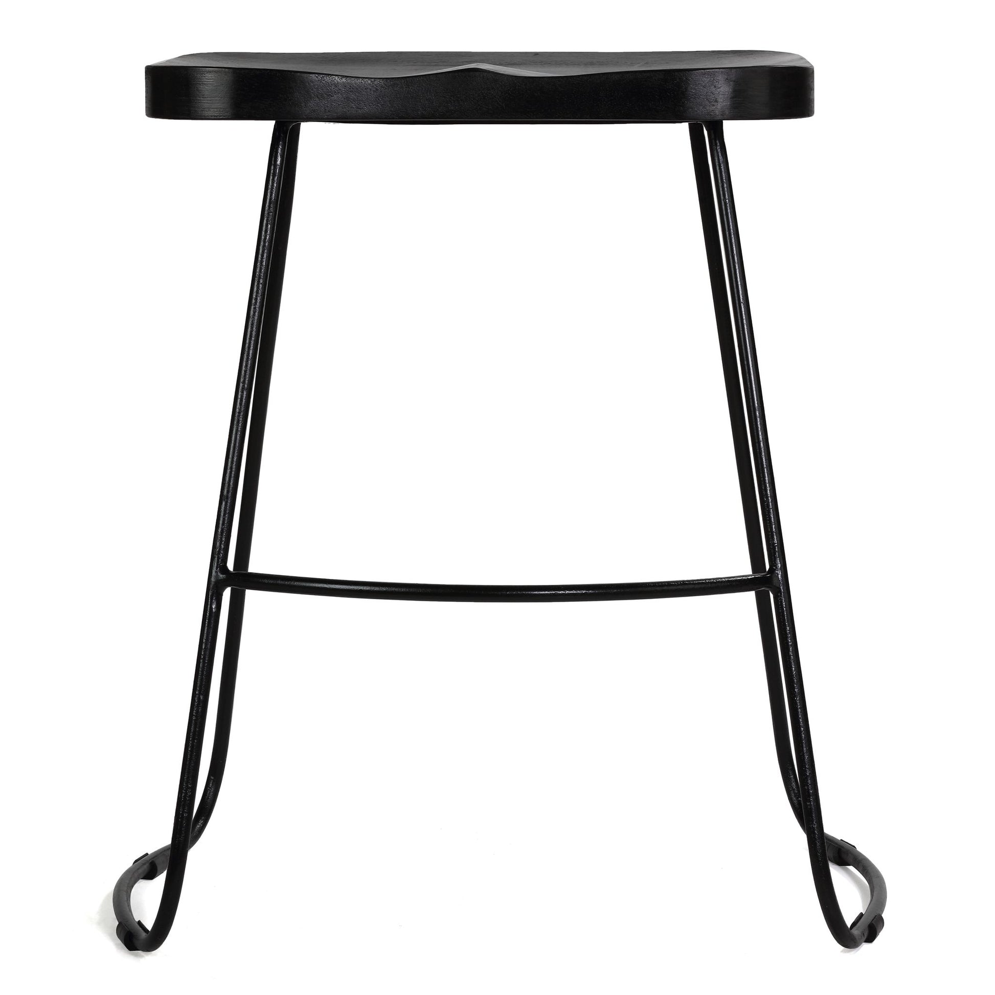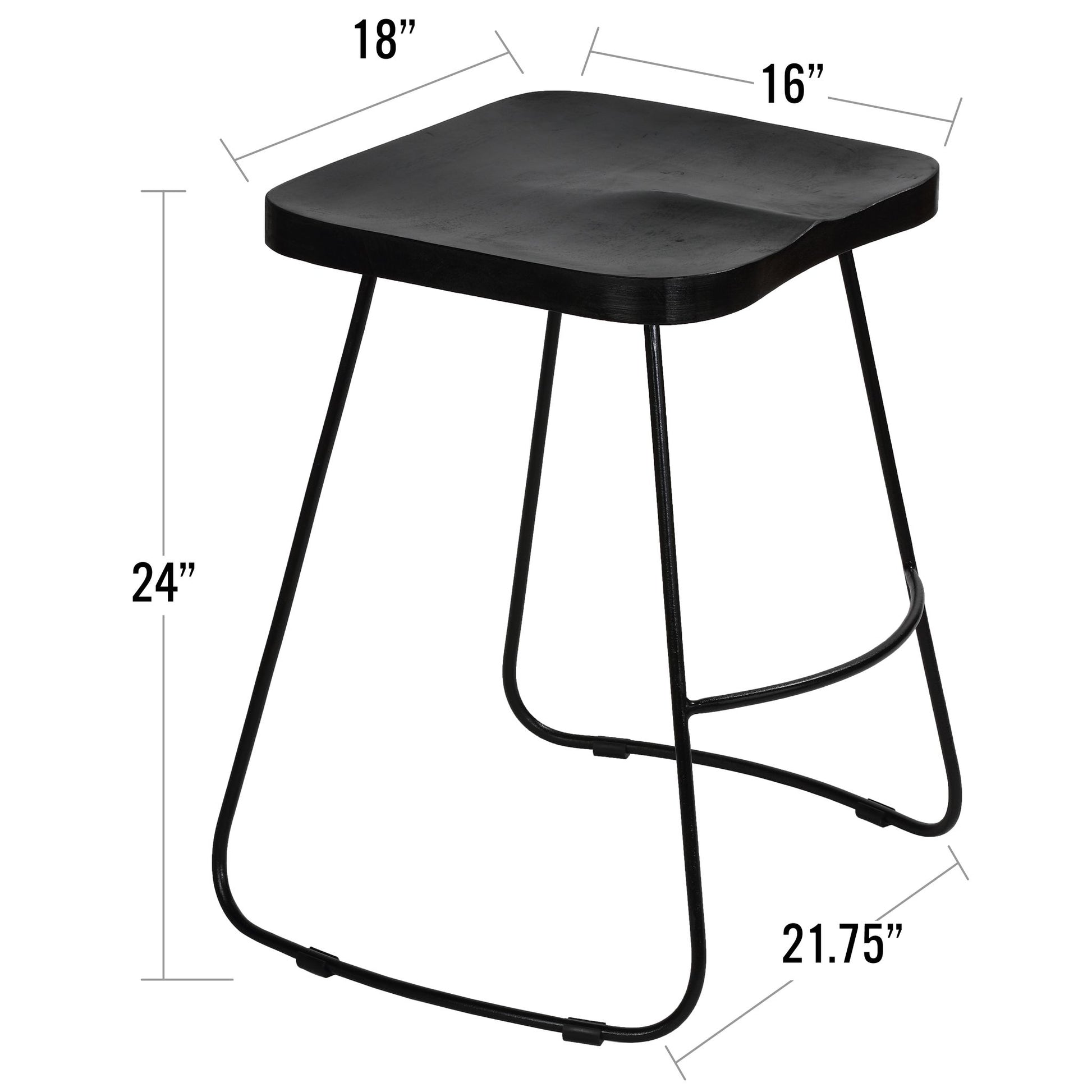 Introducing the Benjamin Stool. Sleek and stylish 24-inch counter stool, the perfect addition to any modern home. The stool features a mango wooden top in a classic black color, perfectly complementing the black metal wire legs. The combination of wood and metal gives the stool a sturdy and durable design, making it ideal for everyday use. The counter height makes it perfect for use at a kitchen counter or breakfast bar. Add a touch of sophistication to your home with this stylish and functional counter stool.