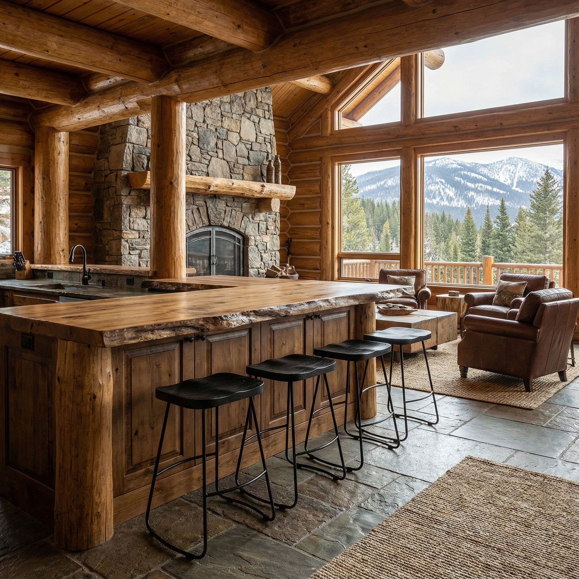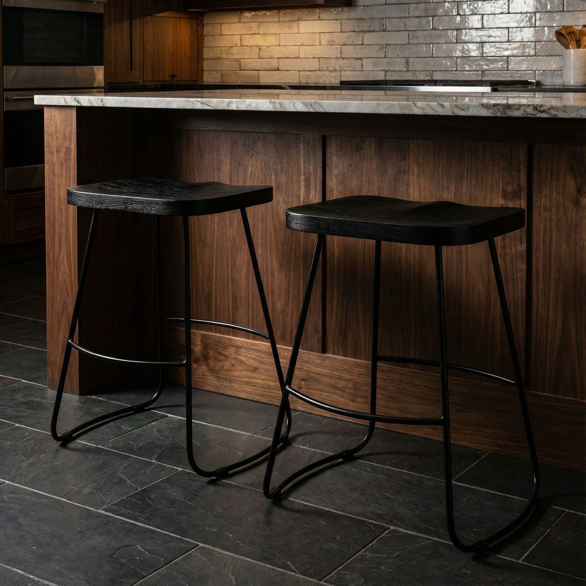 Bare Decor Benjamin Solid Wood Counter Height Stools in Black, Set of 2