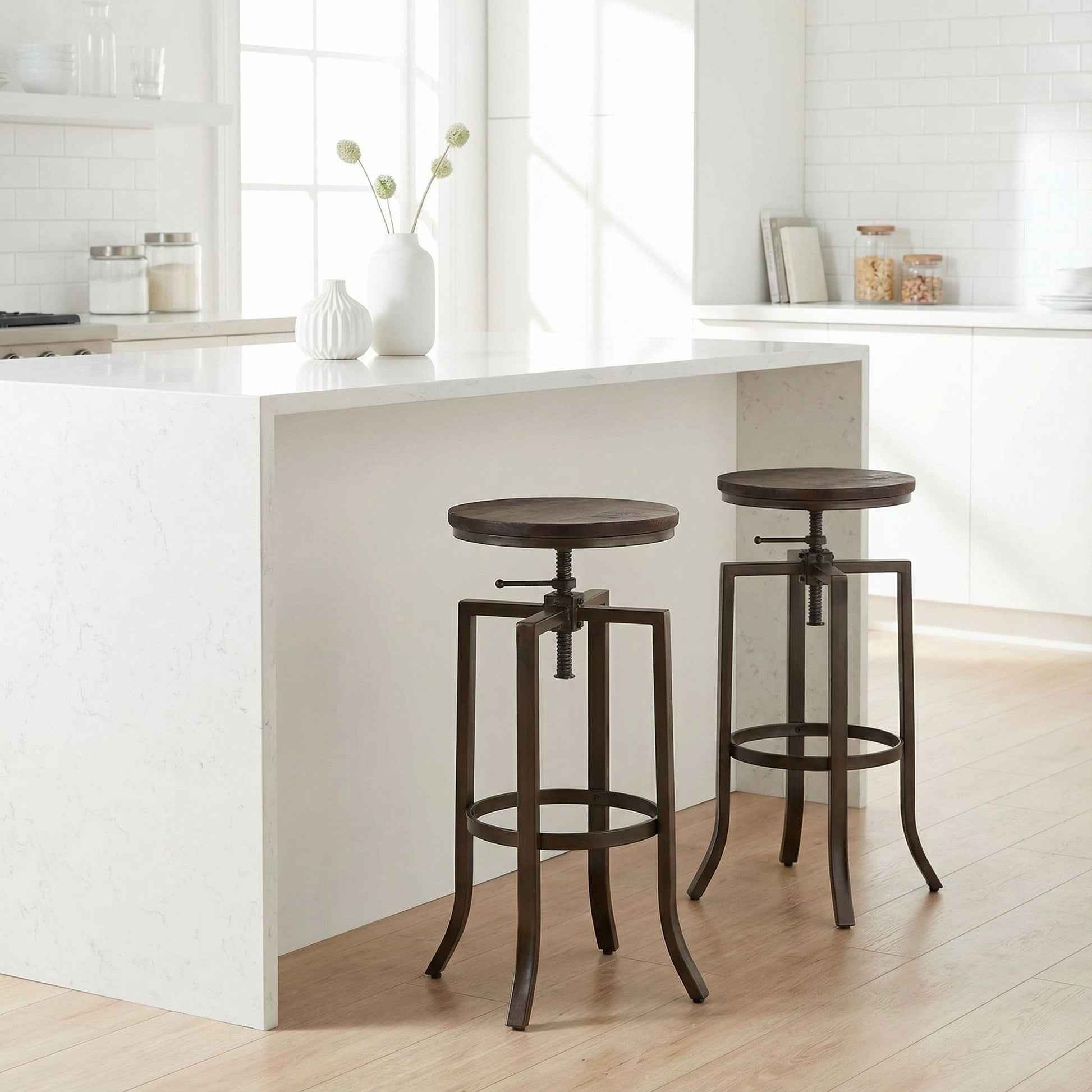 - The screw adjustable height allows you to customize the stool to the perfect height for your counter, bar, or table.